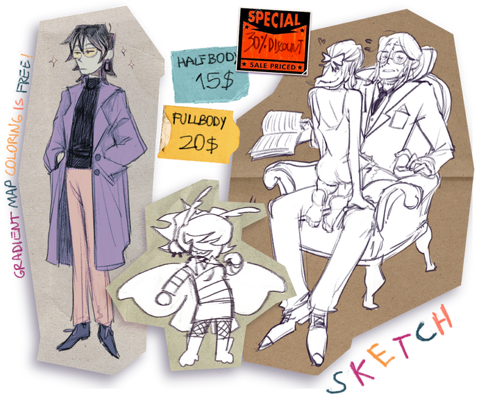 Things I can do with your order:Post it on my social media. I will credit character design that wasn't made by me.*Display on my many forms of portfolio. Also as examples for future commissions.
